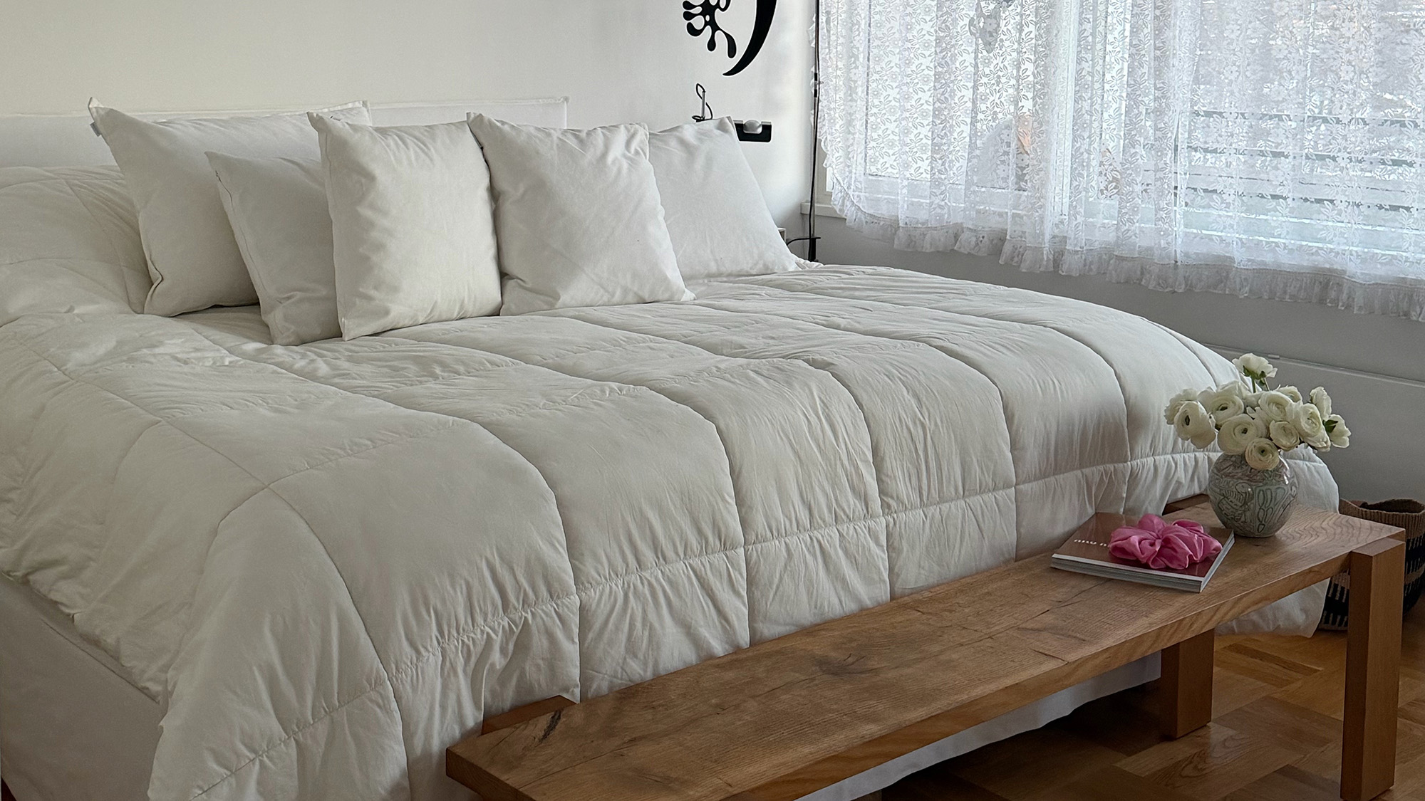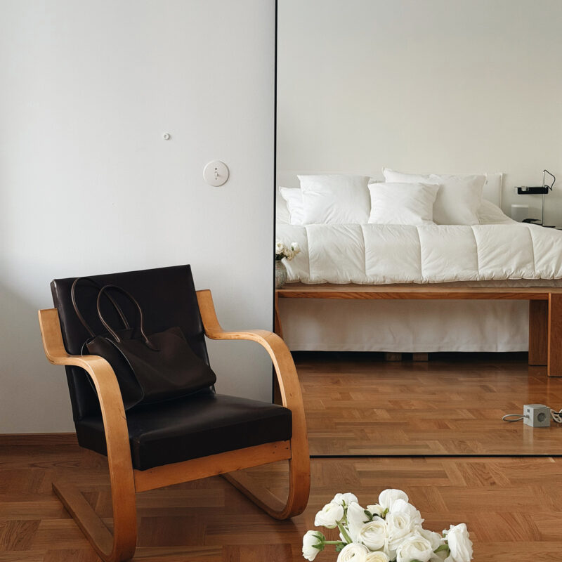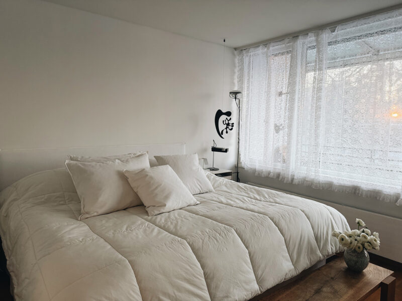 Uusi sänky on muuttanut nukkumisen lisäksi koko makuuhuoneen roolia arjessa. Pehmeämpi patja mukautuu vartalon muotoihin ja puuvillaperkaalilakanat tuovat Kirsikan kaipaaman viileän, rapsakan tunteen – mutta ehkä suurin muutos on ollut se, että makuuhuoneesta on tullut perheen yksi tärkeimmistä oleskelutiloista. Siellä viihdytään nyt selvästi enemmän kuin ennen: iltaisin sinne vetäydytään rauhoittumaan, tekemään ristikoita ja viettämään aikaa yhdessä. Sängyn koko, korkeus ja viimeistelty ilme ovat tehneet tilasta kutsuvan ja ylellisen tuntuisen – paikan, johon on helppo pysähtyä päivän päätteeksi.