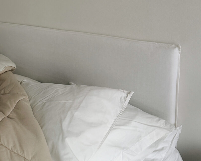 Kirsikka valitsi siron ja yksinkertaisen Slim-sängynpäädyn valkoisella Caleido-kankaalla.