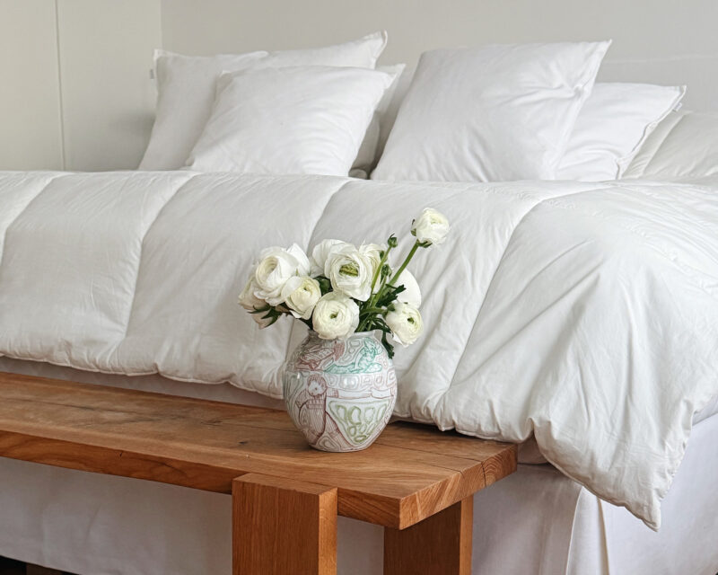 Puuvillaperkaaliset Noora-lakanat ja pehmeämpi patja tuovat hotellitason mukavuutta – ja tekevät Kirsikan makuuhuoneesta uuden arjen lempipaikan.